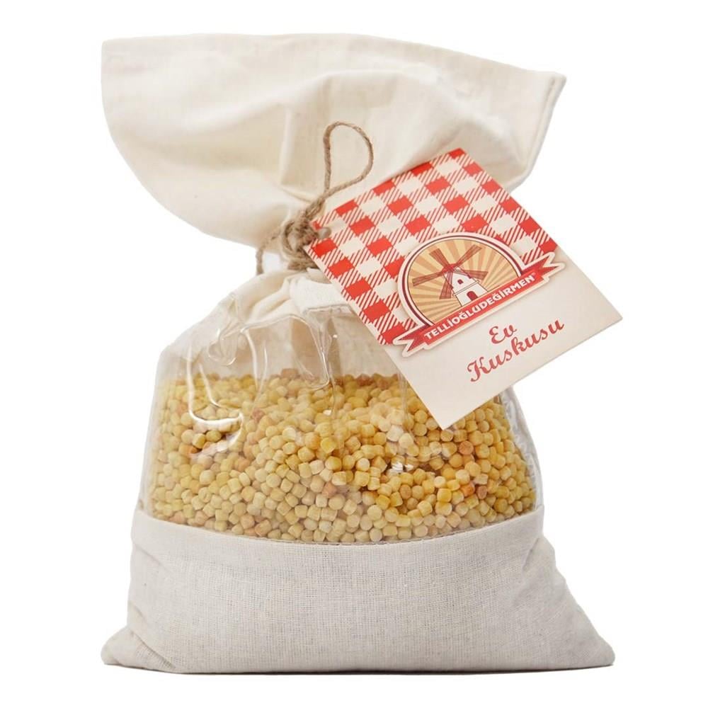 Buğday unu, irmik, yumurta, su ve tuz ile hiç bir koruyucu ve katkı maddesi kullanılmadan üretilmiştir. Bir miktar tereyağı ile kuskus kavrulur.1 ölçek kuskus için 2 ölçek kaynar su ilave edilerek suyunu çekene kadar pişirilir. Dinlendikten sonra isteğe göre etli veya sebzeli yemeklerle veya soğuk olarak salatalarla servis edilir.